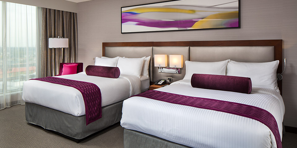 Escape in exquisite elegance to one of our magnificently oversized Deluxe Queen Queen rooms. Each of these remarkable rooms is luxuriously appointed with the finest amenities to ensure an experience like no other. Feel the luxury with two plush queen-size beds with triple-sheeted elegant linens, ultra-modern California-inspired furnishings and top-of-the-line bath amenities by L’Occitane® En Provence.