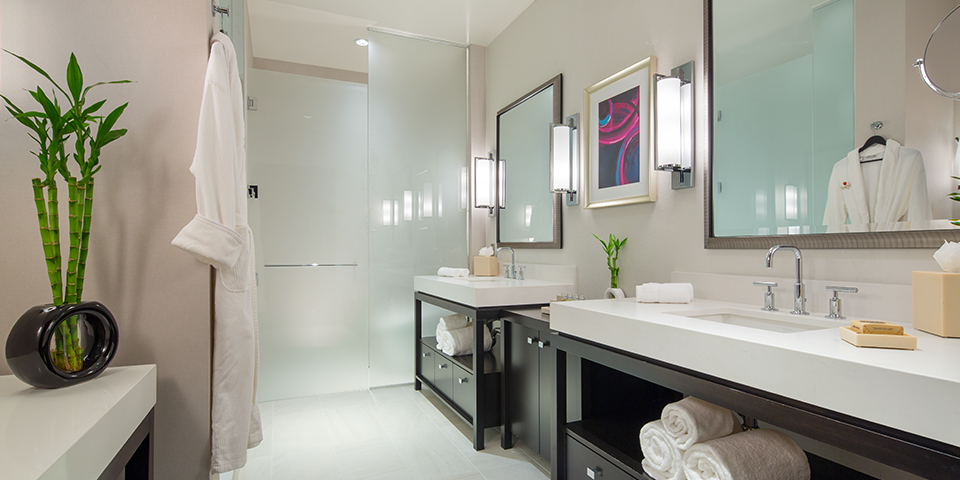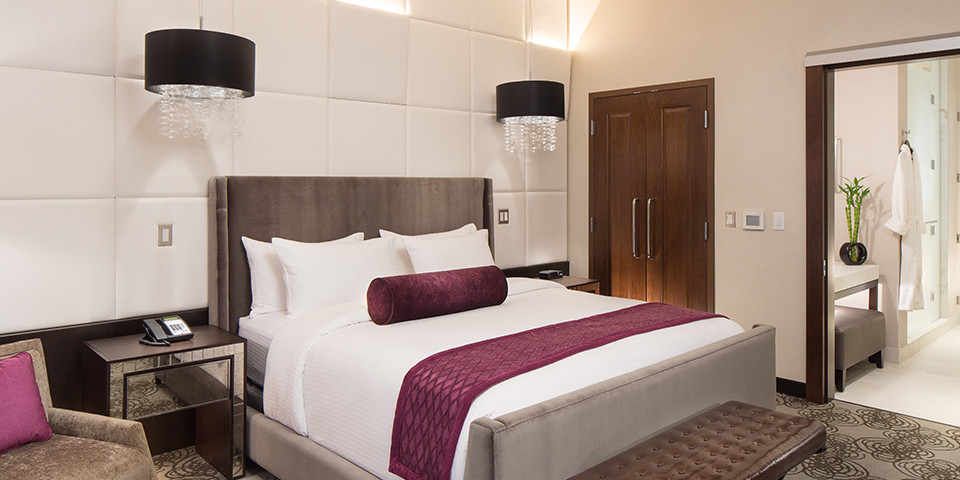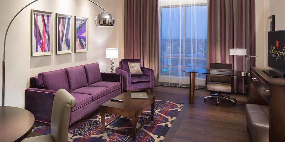 You’ll experience grand extravagance and a new level of luxury when you step into our Governor’s Suite. Everywhere you look, you’ll be regaled with attentively crafted design accents, carefully curated modern furnishings and meticulously chosen amenities that contribute to an undeniable feeling of elegance. This spectacular suite has a master bedroom with a king-size bed and the option to upgrade your suite experience even more by adding an adjoining second bedroom with two queen size beds at an additional cost, all lined with plush pillow tops and elegant linens. Each bedroom is paired with its own extravagant bathroom featuring a soothing soaking tub and oversized shower. Whether you’re entertaining in the spacious living/dining space with wet bar, taking a break from the action on the gaming floor or getting ready for a night of nonstop thrills, these accommodations will exceed your every expectation.